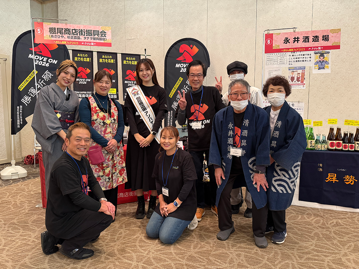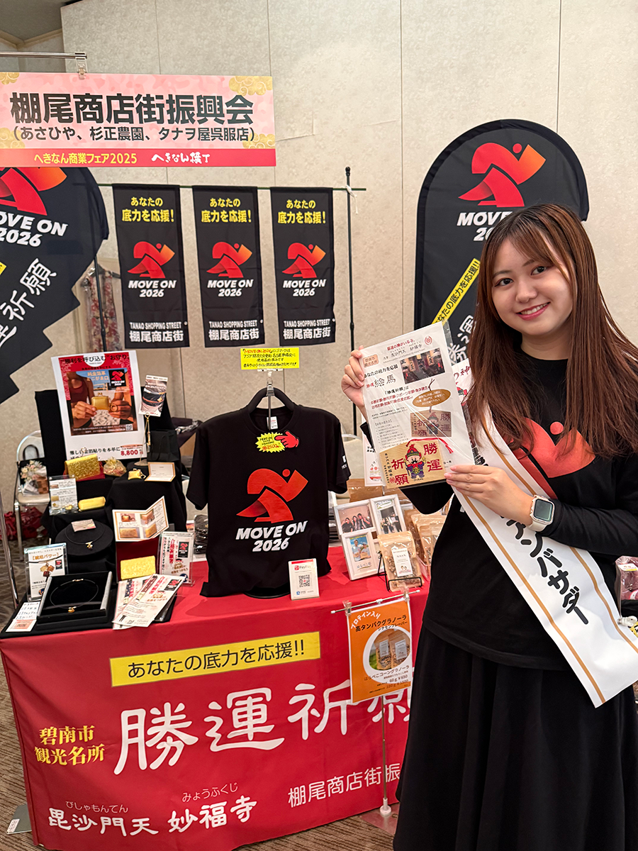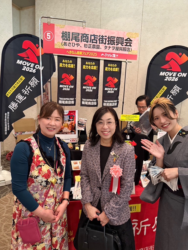 今回のへきなん横丁では、棚尾商店街振興会の加盟する2店舗と商店街(合同)が出店し、「MOVE ON2026」新作応援商品が勢揃いしました。